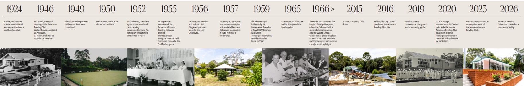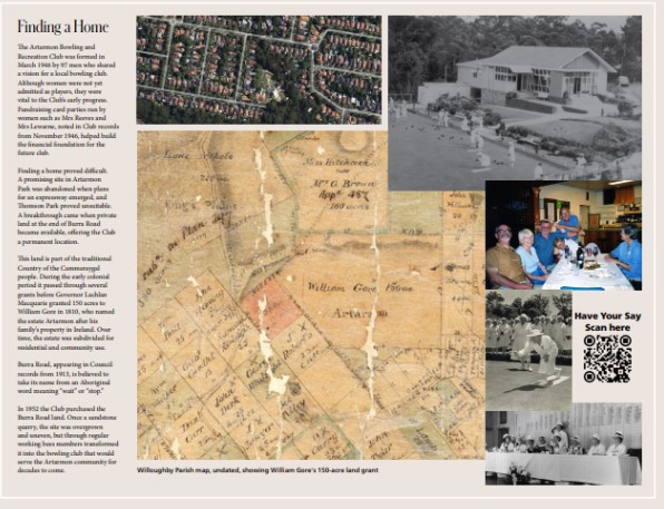 The heritage panel below describes the colourful history of the Artarmon Bowling Club. Come and see the panel at the opening event, drop-in session or anytime throughout the engagement period, until 12 April, and share your thoughts.