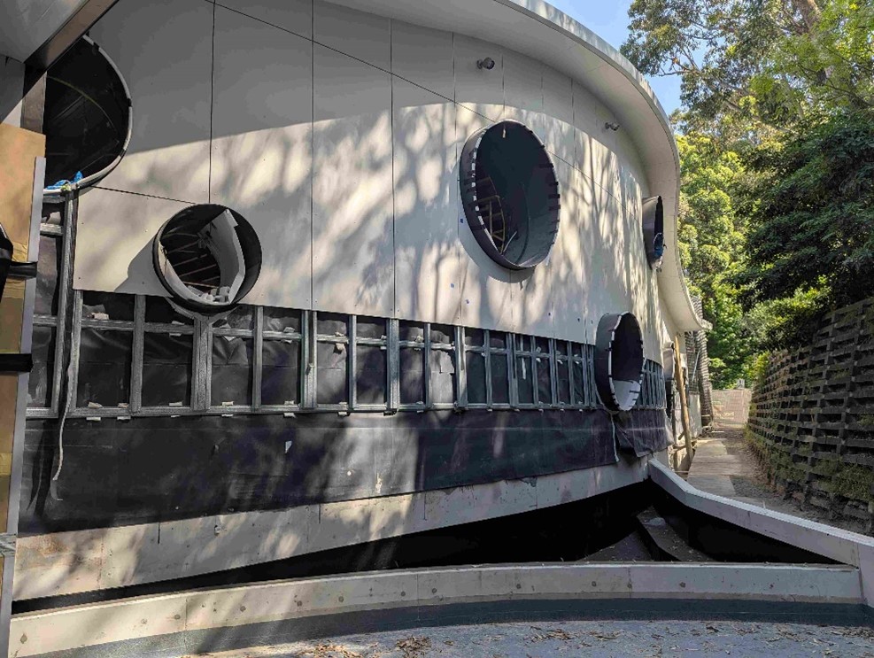 - Glazing – Circular window frames installed in the eastern wall