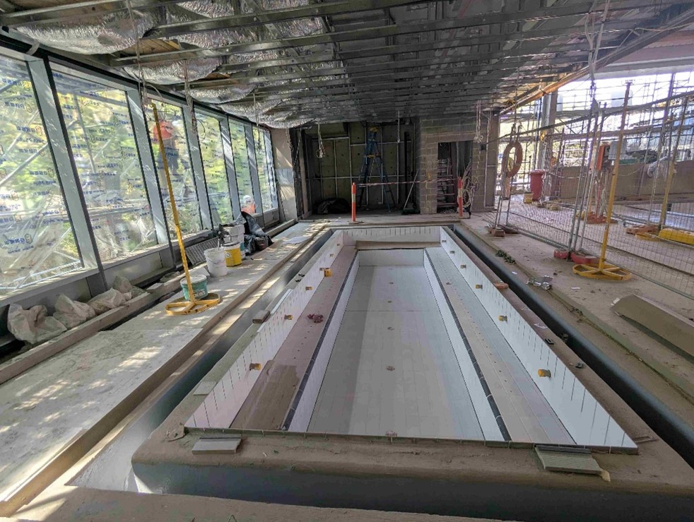· Pool Concrete shells are complete for the 25m Pool, Program Pool, Learn to Swim Pool and Spa