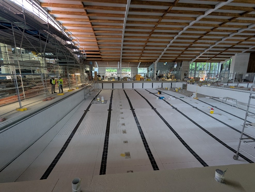 - Pool Concrete shells are complete for the 25m Pool, Program Pool, Learn to Swim Pool and Spa
